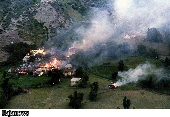 به آتش کشیدن خانه های مسلمانان بوسنی توسط صرب ها در روستای استرینگر ـ سارایوو