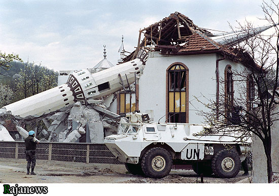 تخریب مسجد مسلمانان توسط صرب ها و حضور گشت سازمان ملل متحد