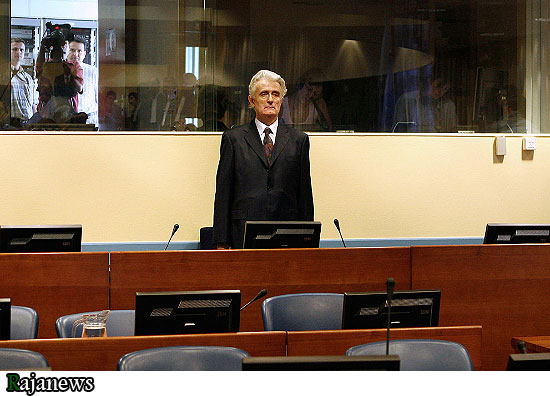 رهبر سابق صرب بوسنی رادوان کارادزیچ، در دادگاه لاهه، او نماد یک چهره جنایتکار در طول جنگ بوسنی است