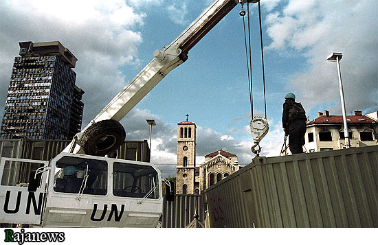 ساخت پناهگاه توسط نیروهای سازمان ملل متحد در سارایوو