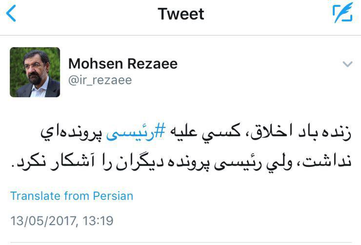 محسن رضايي در توییتر: