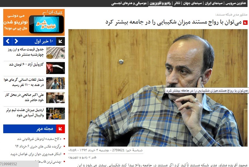 برگردیم به خبر نخست. «محمد آفریده» بدون پذیرفتن اشتباهاتش و بدون آنکه هزینه‌ی اقداماتش را داده باشد، در کسوت مشاوره به شبکه‌ی مستند بازگشته است. هر چند که اخبار موثق حاکی از آن است که جایگاه او در این شبکه خیلی بیشتر از یک مشاوره‌ی ساده است.