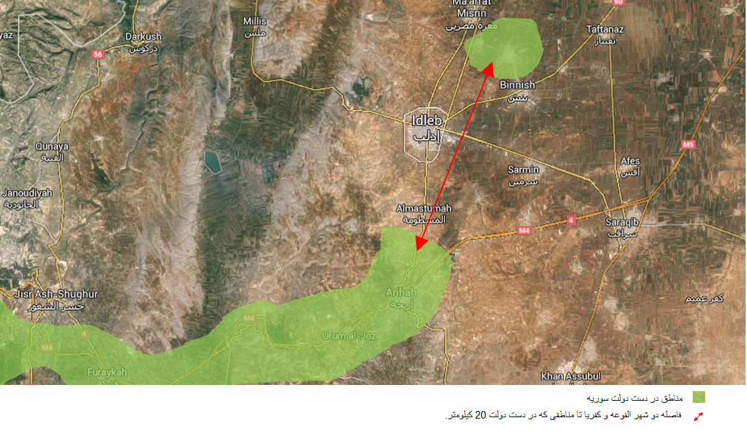 (فاصله دو شهر «الفوعه» و«کفریا» با مناطقی که در دست دولت سوریه است)