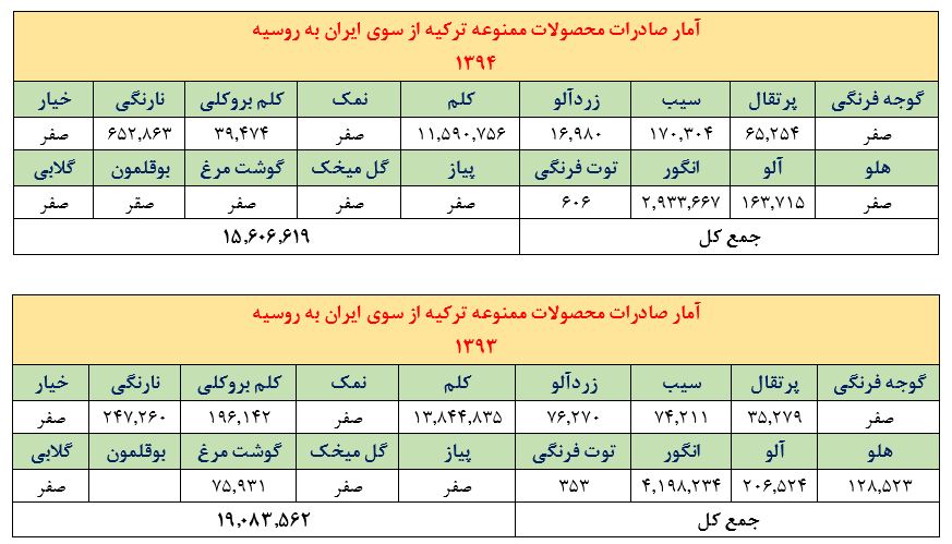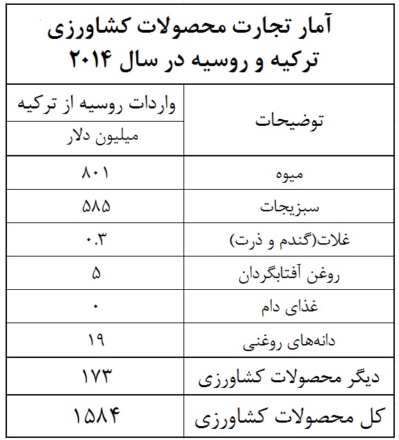 عدم استفاده از فرصت اقتصادی موجود صرفا به محصولات کشاورزی خلاصه نمی گردد. بلکه با سوء مدیریت مدیران نجومی دولت یازدهم، نتوانستیم از فرصت های عدم به کارگیری اتباع ترک در روسیه، عدم صادرات گاز و میعانات گازی روسیه به ترکیه، پایان کار شرکتهای ساختمان سازی ترک در روسیه و سه میلیون گردشگر روسی به ترکیه نیز استفاده کنیم. فرصت هایی که می توانست درآمد تجاری ایران را تا بیش از 5 میلیارد دلار افزایش دهد.