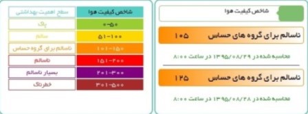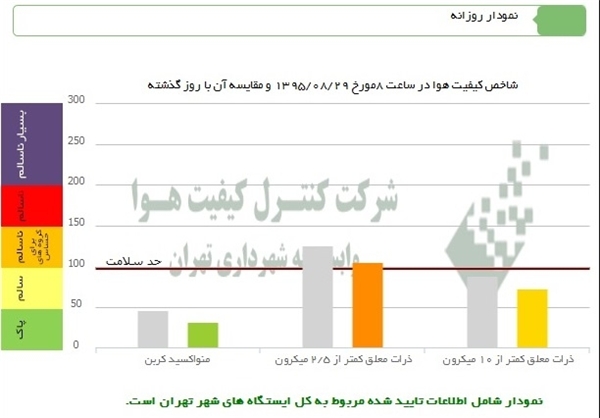 شاخص آلودگی هوای تهران در روز 29 آبان عدد 105 را نشان میدهد بو هوای تهران ناسالم برای گروههای حساس اعلام شده است.