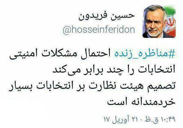 \پیش از این نیز رسانه ها تصویری از توئیت حسین فریدون برادر رئیس جمهور منتشر کردند که نشان میداد تیم دولت به طور کامل در پشت پرده مناظرات ضبطی قرار دارد