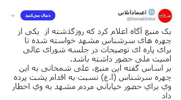 امروز صبح اخباری در خصوص احضار یا اخطار به آیتالله علمالهدی از سوی شورای عالی امنیت ملی در برخی رسانهها منتشرشده است.