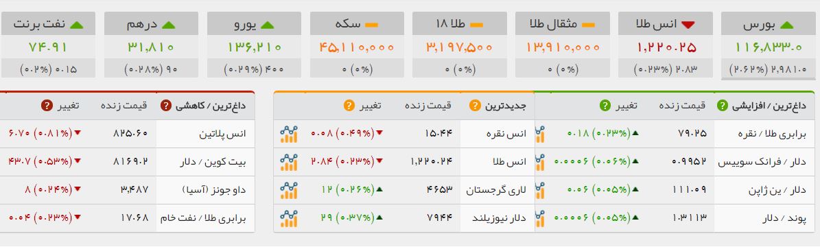 دوشنبه 8 مرداد 1397 ساعت 11:12 دوشنبه 8 مرداد 1397 11:07 ساعت 2018-7-30 11:12:27 اقتصاد شناسه خبر : 290476 سکه همچنان رکورد می زند/ قیمت = چهار و نیم میلیون تومان به گزارش شبکه اطلاع رسانی سکه، ارز و بازار تهران قیمت سکه تا این لحظه از 4/5 میلیون تومان عبور کرد. لینک کوتاه » http://rajanews.com/node/290476 لینک کوتاه کپی شد 2 پسندیدم ارسال به » کلیدواژه ها » قیمت سکه سکه رکورد نام شما ایمیل اطلاعات این فیلد خصوصی است و منتشر نمیگردد. وب سایت ۹ بعلاوه ۲ میشود دیدگاه * نظرات حاوی متن تبلیغاتی، متن فارسی با حروف لاتین (فینگلیش)، توهین و الفاظ ناشایست، نمایش داده نخواهد شد.