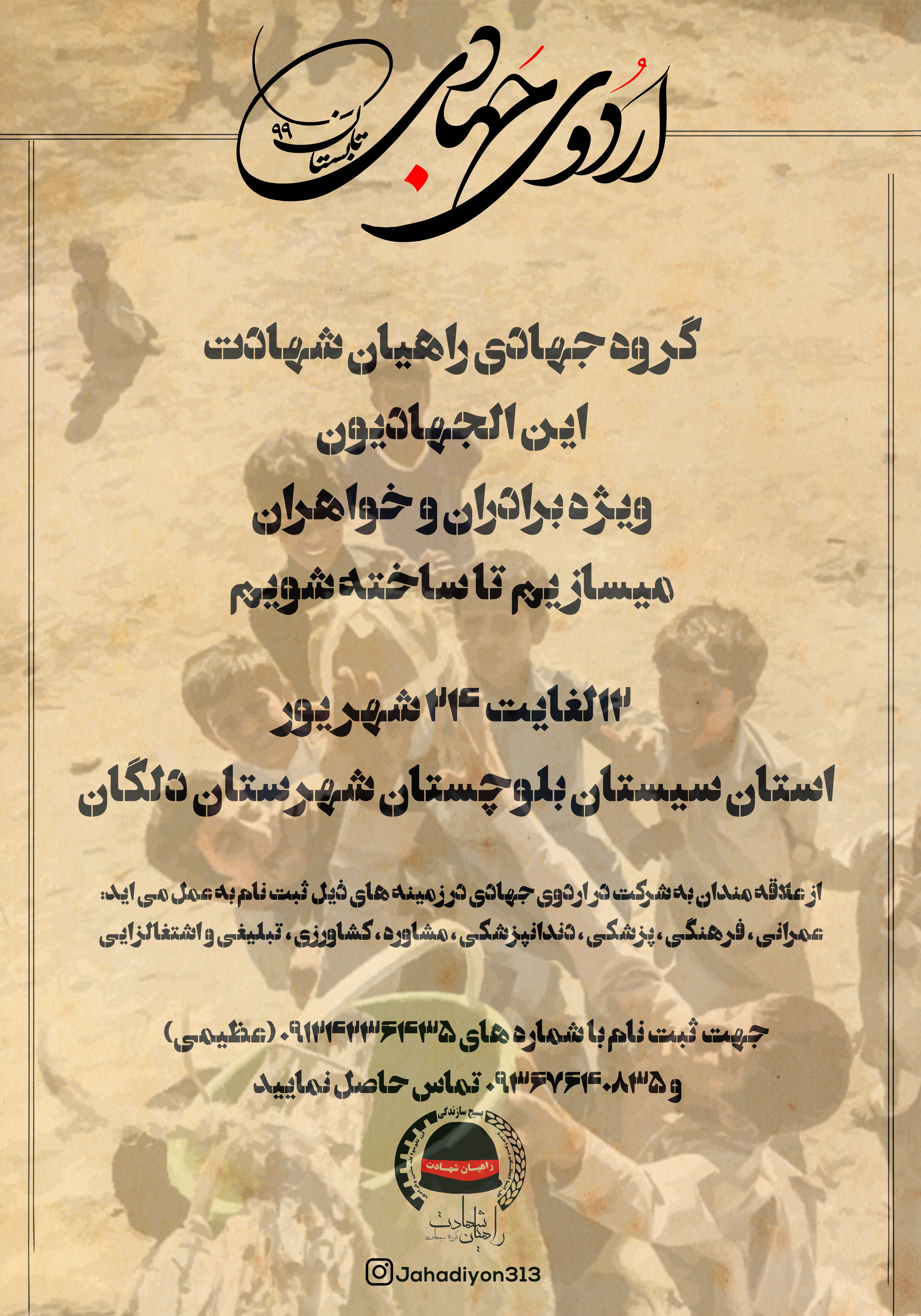 زمان اردوی جهادی : 12 لغایت 24 شهریور 99
