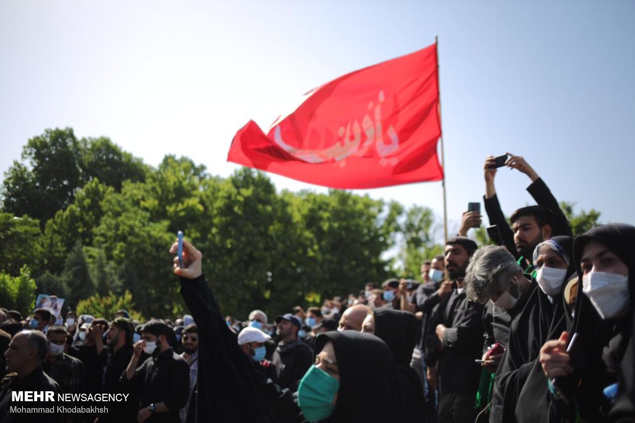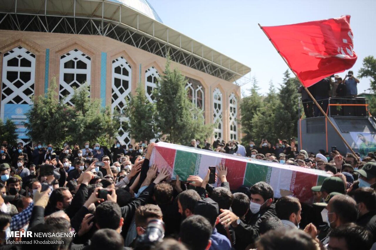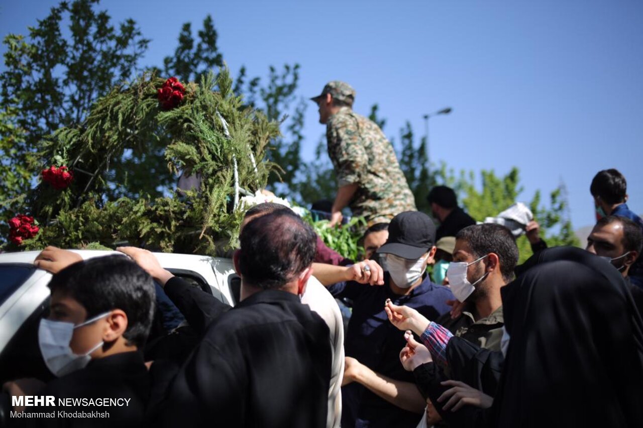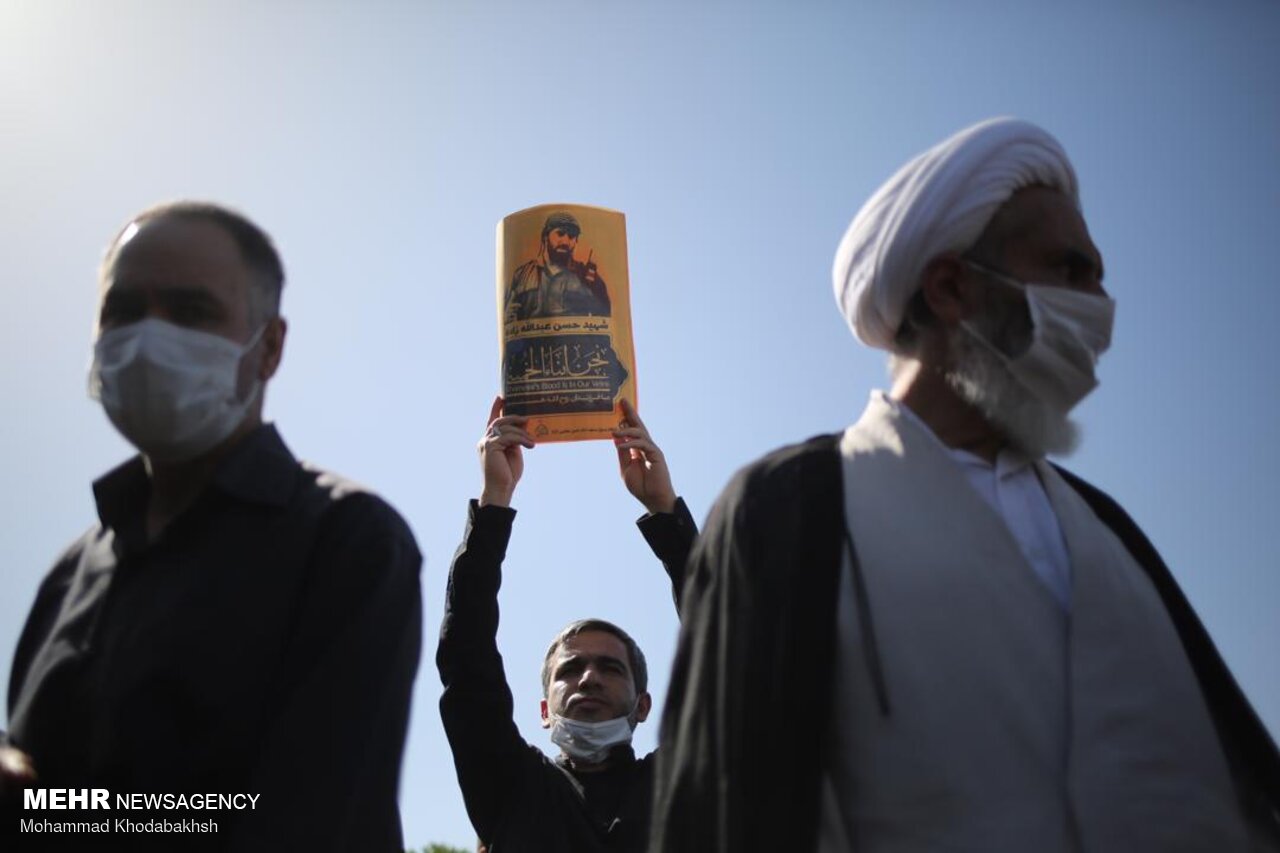 مراسم تشییع پیکر شهید مدافع حرم حسن عبداللهزاده صبح یکشنبه همزمان با سالروز شهادت امام جعفر صادق علیه السلام در شهرک شهید محلاتی تهران برگزار شد.