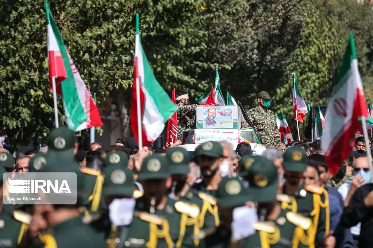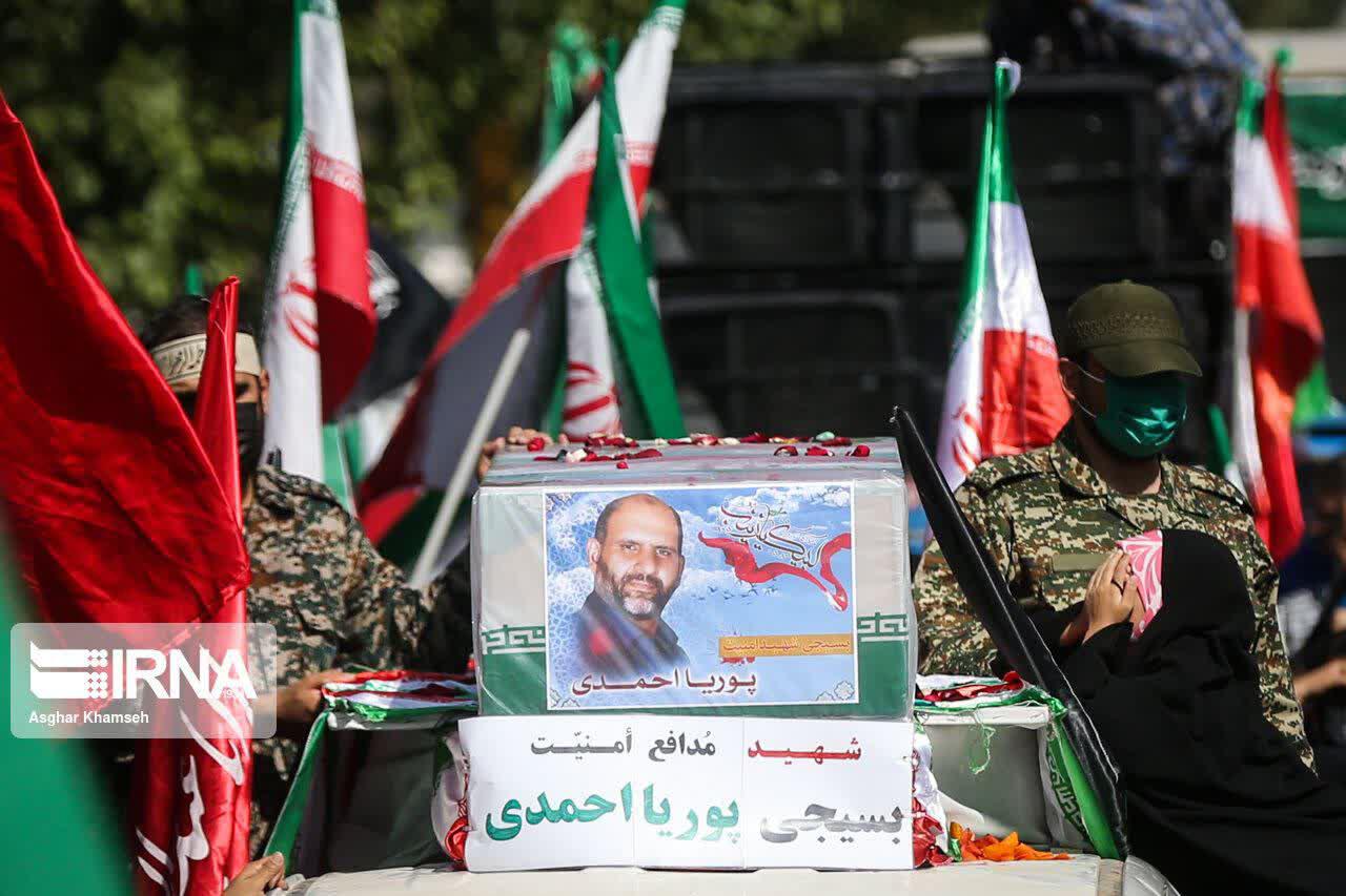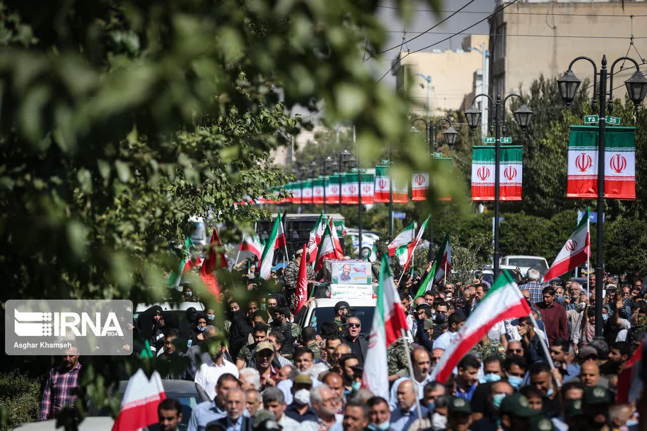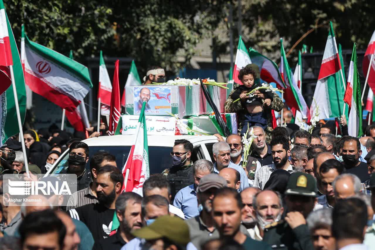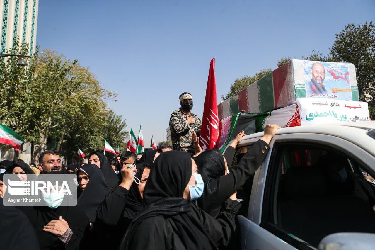 مراسم تشييع پيكر شهيد مدافع امنيت پوريا احمدی صبح جمعه(۱۵ مهر ۱۴۰۱) از ميدان امام حسين(ع) تا ميدان شهدا برگزار شد.