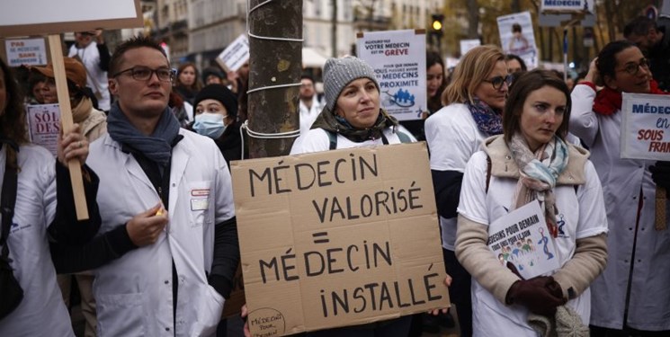 گروه بین الملل-رجانیوز: هزار نفر از کادر پزشکی فرانسه در روز  پنجشنبه پنجم ژانویه برای شرایط کاری بهتر و افزایش حقوق در پاریس تظاهرات کردند.