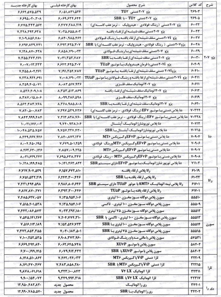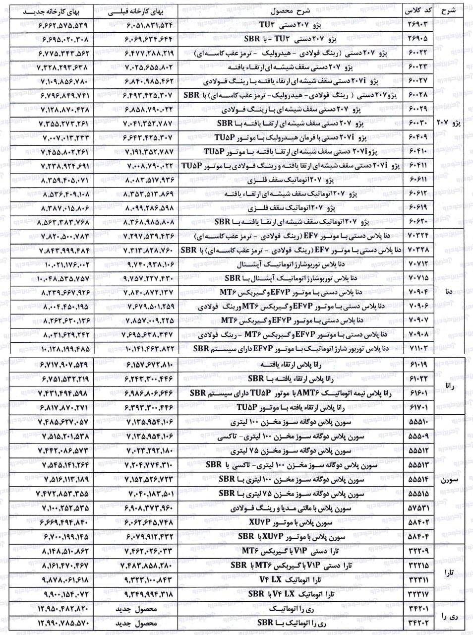 ایران خودرو قیمت جدید درب کارخانه محصولاتش را اعلام کرده که به قیمت‌های مندرج در جدول هزینه های مالیات، شماره گذاری، بیمه و… اضافه خواهد شد.