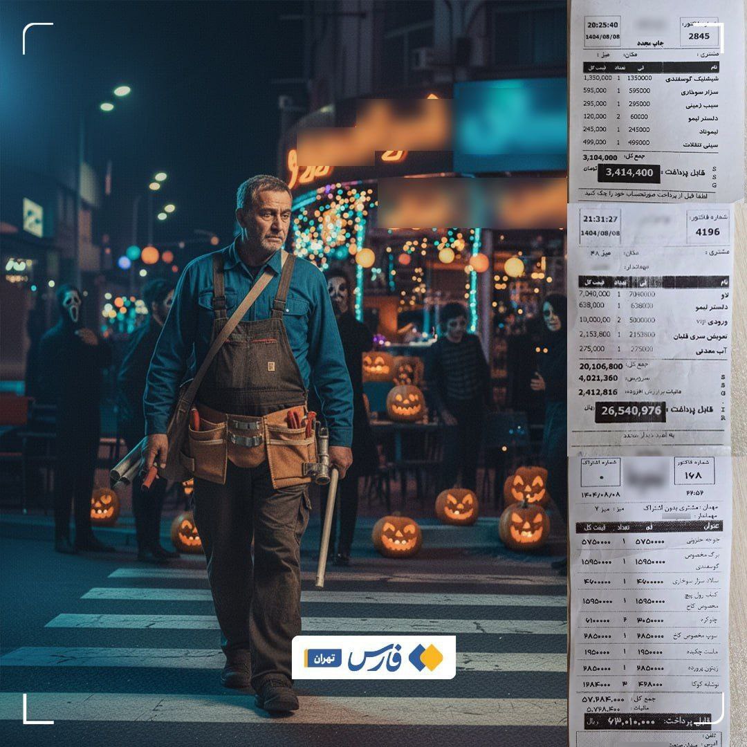 در یکی از کافههای شمال تهران، فاکتور میز هالووین با احتساب غذا و خدمات، حدود ۶ میلیون و ۳۰۰ هزار تومان هزینه داشته است.