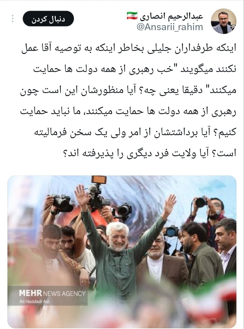 این چندمین باری است که جریان حامی رئیس مجلس پس از سخنان وحدتآفرین رهبر انقلاب اقدام به ایجاد شکاف در جریان انقلابی کرده و برای غربگرایان خوشرقصی میکنند.