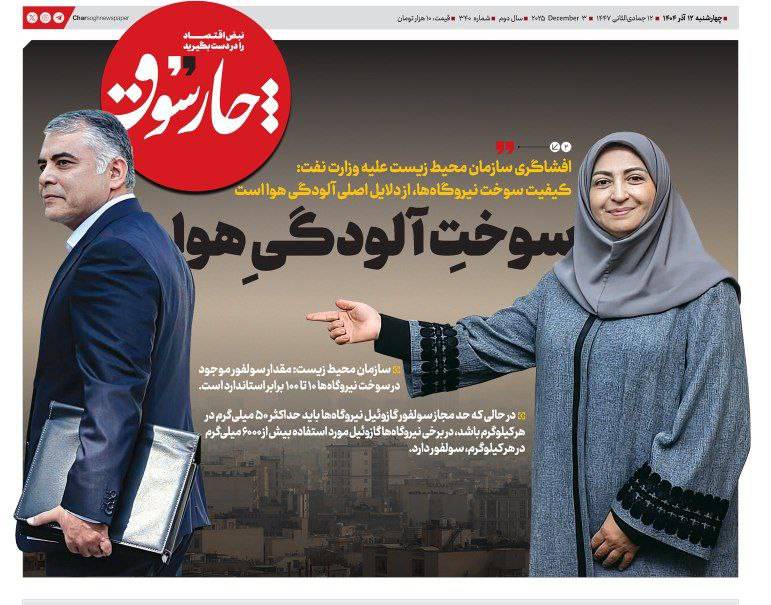 روزنامه چارسوق: درحالیکه که مسئولان وزارت نفت در دولت چهاردهم اخیرا مدعی شده‌اند که سوخت تحویلی به نیروگاه‌ها کیفیت بهتری پیدا کرده و حتی درباره علت استفاده مجدد از مازوت در نیروگاه‌ها گفته شده که مازوت با گوگرد پایین به نیروگاه‌ها داده شده، اما گزارش رسمی سازمان محیط زیست میگوید مقدار سولفور موجود در سوخت نیروگاه‌ها ۱۰ تا ۱۰۰ برابر استاندارد است.