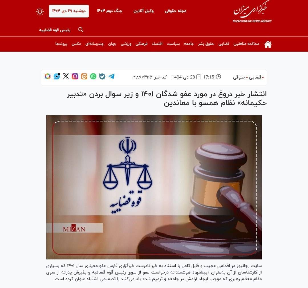 نکته تعجبآور دفاعیه خبرگزاری میزان، مقاومت این رسانه در برابر پذیرش امر واقع است. در هر صورت این مطلب قطعی است که برخی از عفوشدگان سال ۱۴۰۱ در میان تروریستها و محاربین ۱۴۰۴ حاضر بودهاند و خسارتهای قابل توجهی نیز ایجاد کردند.
