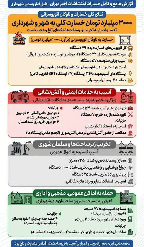 چهارشنبه 8 بهمن 1404 ساعت 02:17 چهارشنبه 8 بهمن 1404 01:23 ساعت 2026-1-28 02:17:20 عکس شناسه خبر : 388287 خسارت آشوبگران به تهران در یک نگاه لینک کوتاه » http://rajanews.com/node/388287 لینک کوتاه کپی شد 1 پسندیدم ارسال به » نام شما ایمیل اطلاعات این فیلد خصوصی است و منتشر نمیگردد. وب سایت ۱ بعلاوه ۵ میشود دیدگاه * نظرات حاوی متن تبلیغاتی، متن فارسی با حروف لاتین (فینگلیش)، توهین و الفاظ ناشایست، نمایش داده نخواهد شد.