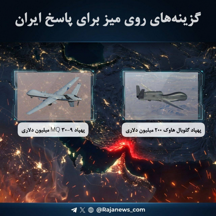 چهارشنبه 15 بهمن 1404 ساعت 17:32 چهارشنبه 15 بهمن 1404 17:31 ساعت 2026-2-4 17:32:19 عکس شناسه خبر : 388395 گزینههای روی میز برای پاسخ ایران/ از پهپاد ۳۰ میلیون دلاری تا گلوبال هاوک ۲۰۰ میلیونی لینک کوتاه » http://rajanews.com/node/388395 لینک کوتاه کپی شد 1 پسندیدم ارسال به » نام شما ایمیل اطلاعات این فیلد خصوصی است و منتشر نمیگردد. وب سایت ۸ بعلاوه ۱ میشود دیدگاه * نظرات حاوی متن تبلیغاتی، متن فارسی با حروف لاتین (فینگلیش)، توهین و الفاظ ناشایست، نمایش داده نخواهد شد.