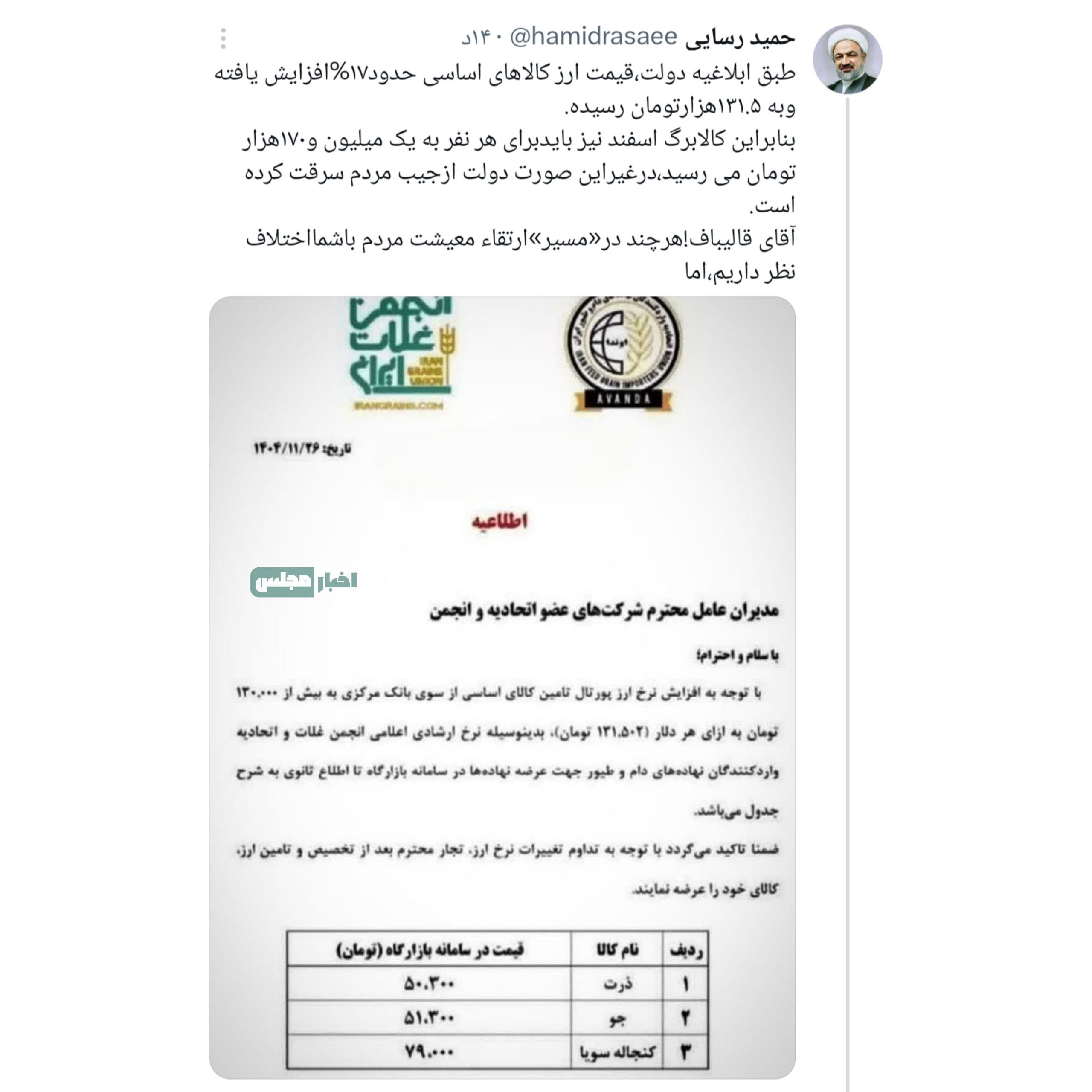 گروه اقتصاد-رجانیوز: حمید رسایی در ادامه خطاب به رئیس مجلس گفت: هرچند در «مسیر» ارتقاء معیشت مردم باشما اختلاف نظر داریم، اما ‏در نیت شما برای بهبود معیشت مردم اختلافی نیست.