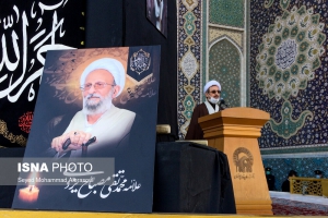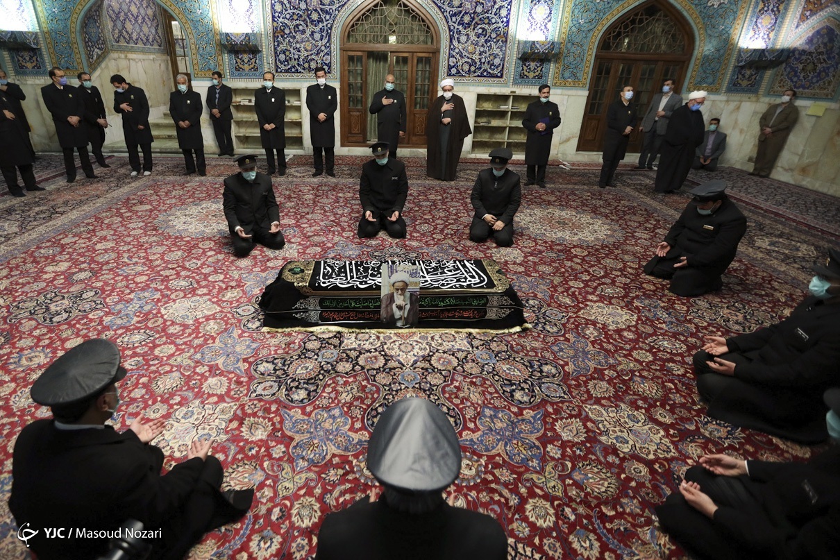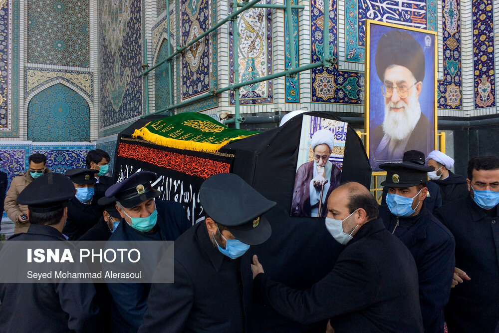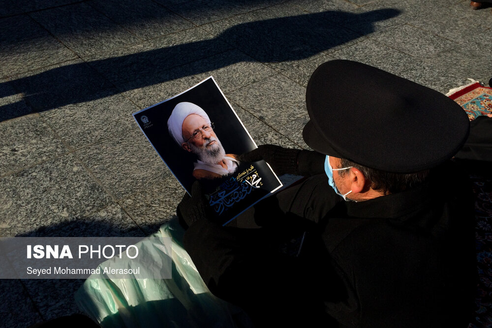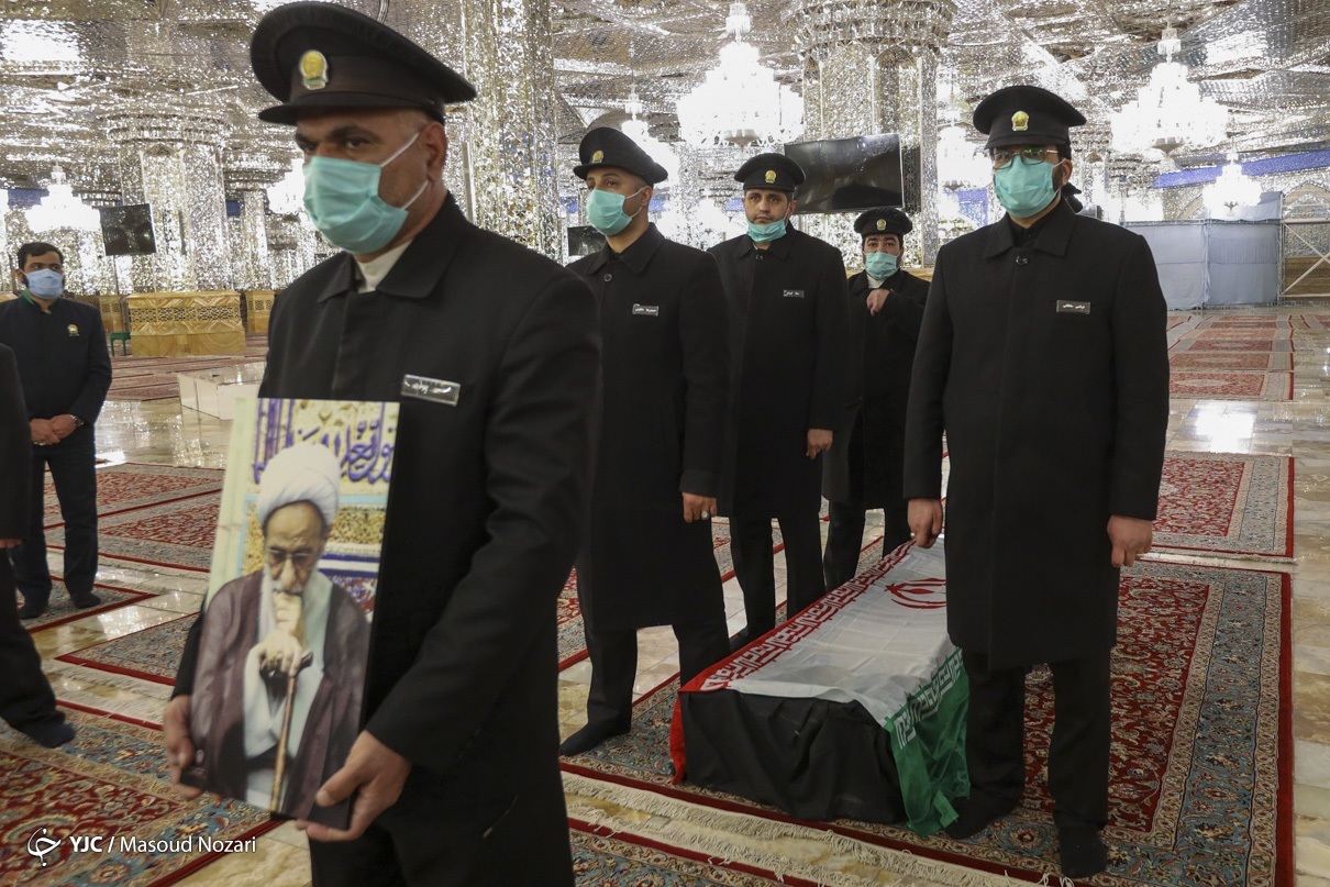 مراسم وداع با پیکر آیتالله مصباح یزدی، صبح یکشنبه ۱۴ دی در حرم مطهر حضرت امام رضا (ع) با حضور مردم و خادمین آن حضرت برگزار شد.