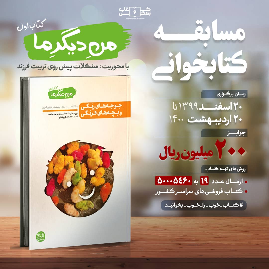 جلد اول از مجموعه هفت جلدی «منِ دیگر ما» به مشکلات پیش روی تربیت فرزند پرداخته و با شعار «فرزند ما از ما جدا نیست؛ او خود ماست اما در اندازهای کوچکتر» سیستم تربیتی اجرایی و مناسبی تعریف میکند. مجموعۀ من دیگر ما کتاب شایستۀ تقدیر در بیستمین دورۀ کتاب سال حوزه نیز شناخته شد.